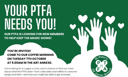 On Tuesday, 7th October at 9am, we will be holding a Coffee Morning for anyone that is interested in joining our fantastic PTFA Team.
